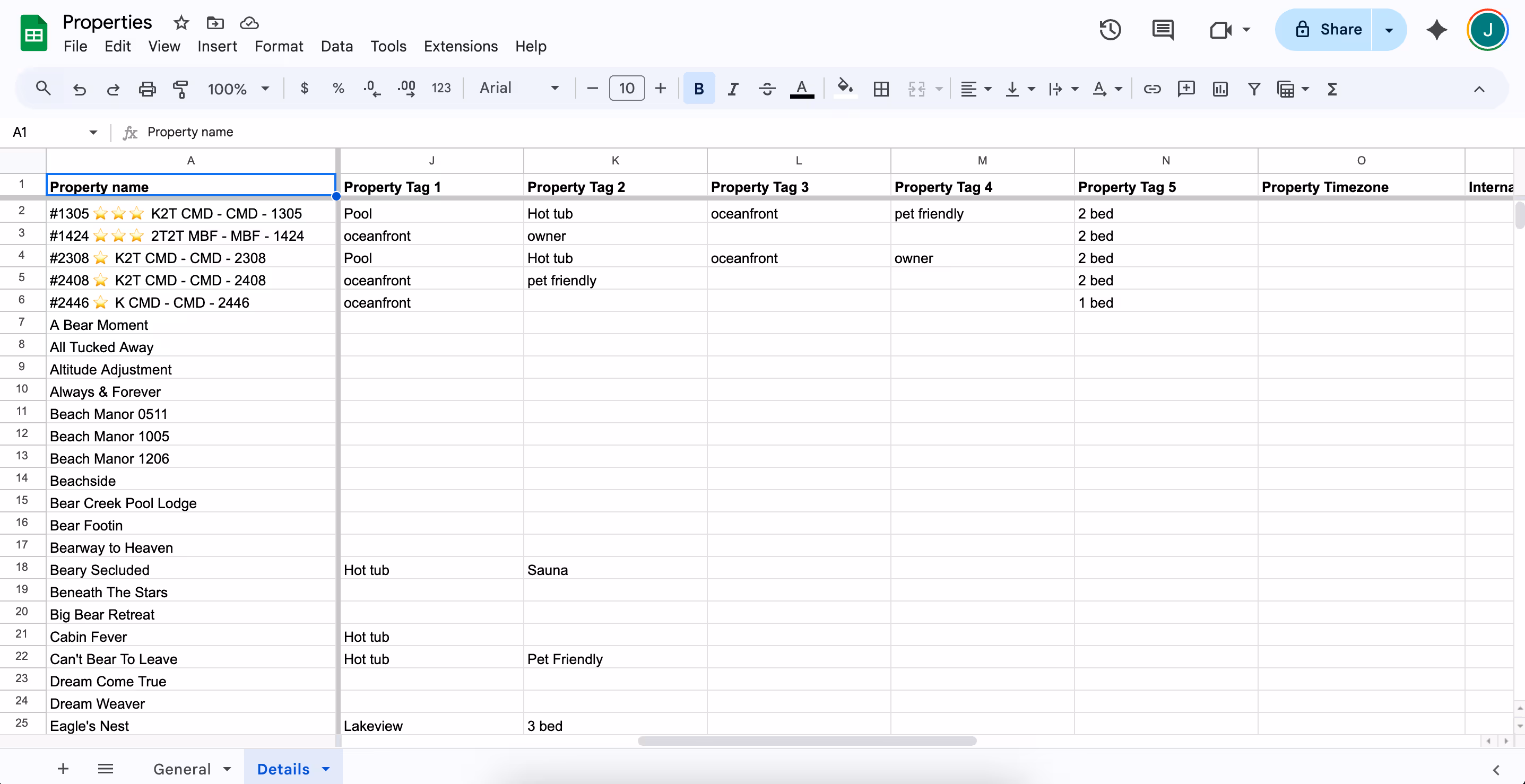 Caption: Property managers could associate their properties here with tags, groups, specs, and IDs. These details made it easy to filter properties on scheduling pages and apply bulk actions to specific subsets.